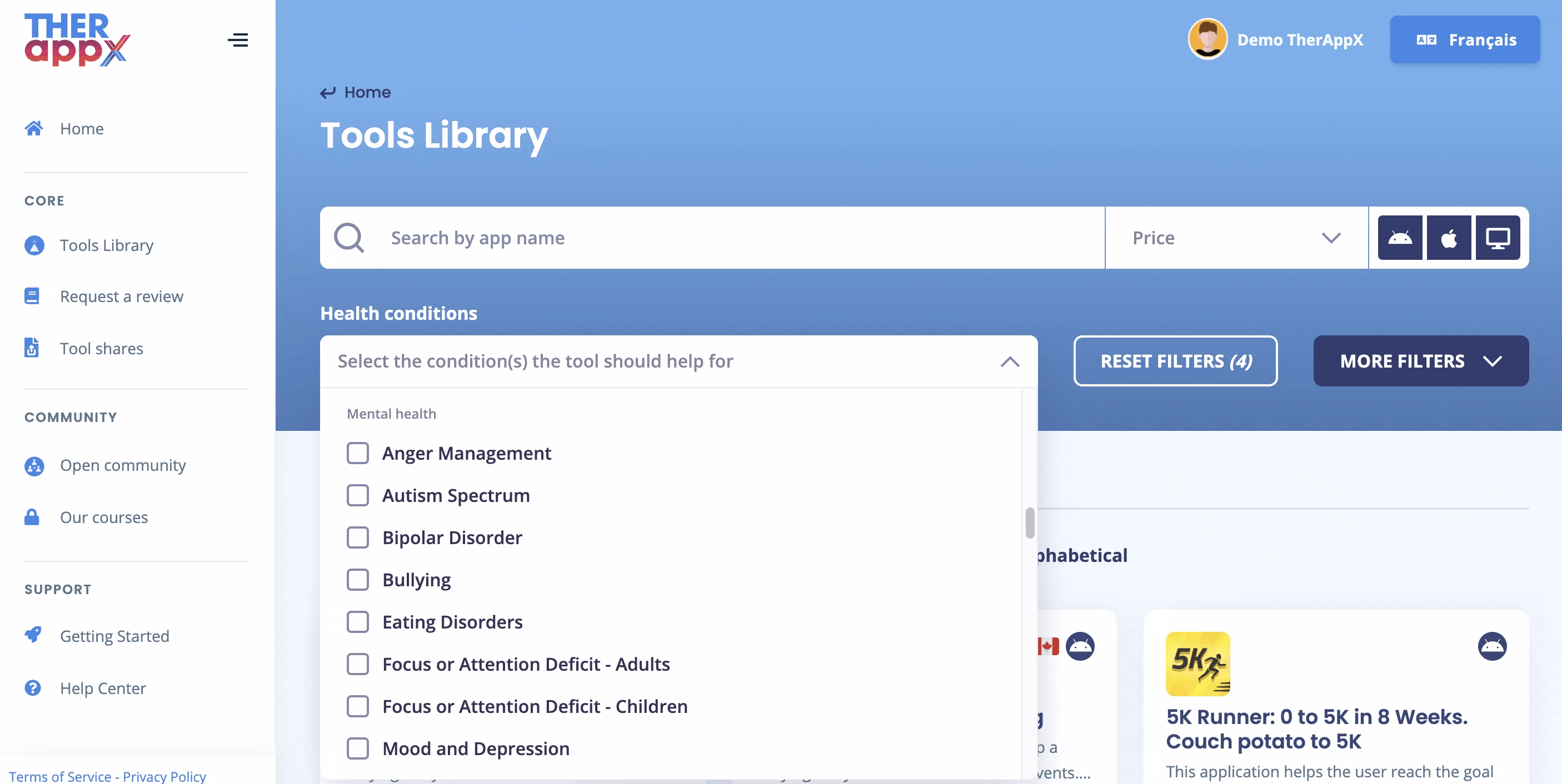 Find Digital Health Tools for specific mental health conditions